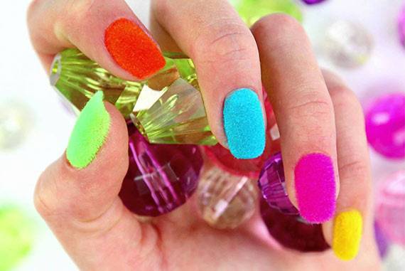 Флок дизайн ногтей — покрытие ногтей бархатным песком
