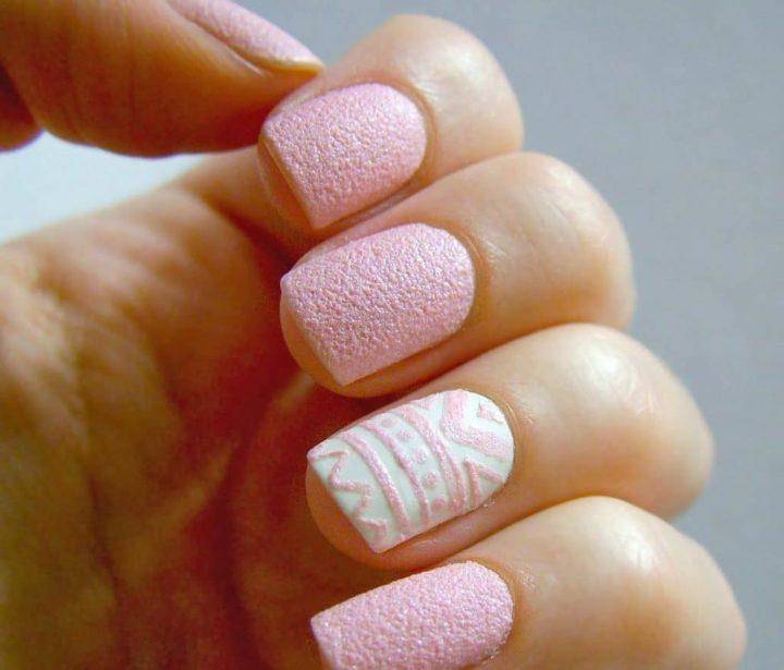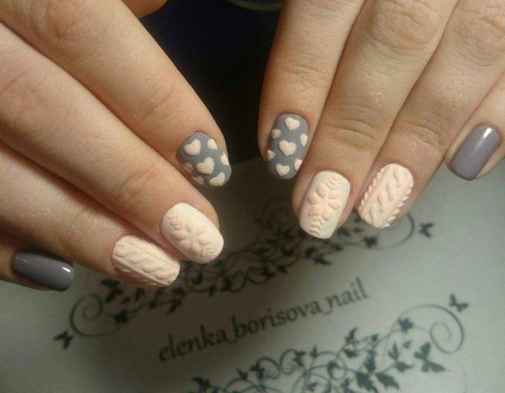 Вязаный дизайн или велюровое покрытие стало популярно совсем недавно. Это относительно новая техника, которая пользуется огромным спросом в зимнее время. Так можно зрительно «утеплить» ноготки.