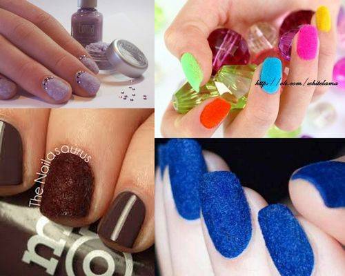 В обиходе этот дизайн получил название «кашемировых коготков». Такая технология напоминает матовое покрытие с дополнительным эффектом бархатистости на ваших ногтях. (См. также )