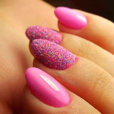 - Красота. Внешне он на ногтях напоминает очень маленький, малоабразивный песок, при правильном сочетании цвета смотрится весьма экстравагантно;