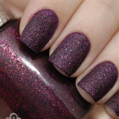 Бархатный песок лучше всего крепится к матовым оттенкам лака, а избранный дизайн ногтей на них легче прорисовывается. Однако если он будет покрывать всю поверхность пластины, то смело можно использовать и глянцевый лак.