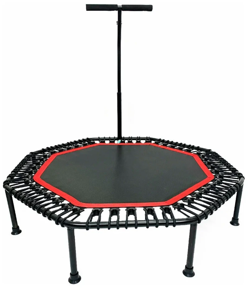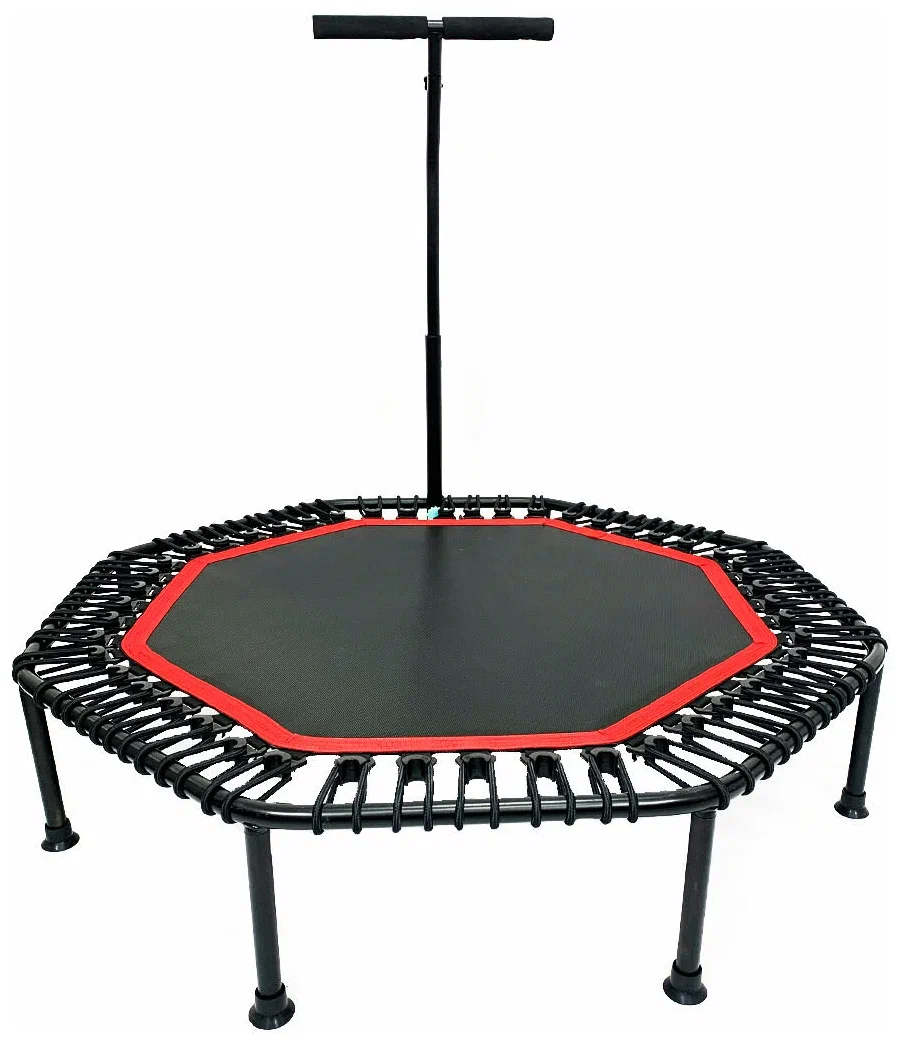 На основании данных от наших клиентов, мы прозвали этот батут с ручкой для фитнеса – «силачом». При своих небольших размерах – диаметр 122 см, высота – 26,5 см, он может выдерживать нагрузку до 200 кг. Ручка в комплекте съемная, благодаря чему в разобранном виде батут занимает минимум места. Поверхность для прыжков выполнена из надежного полипропилена.