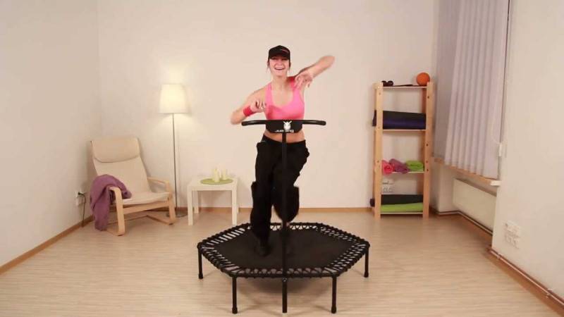 При тренировке с небольшим батутом полезно включать в программу танцевальные элементы, сочетая их с прыжками и другими упражнениями.