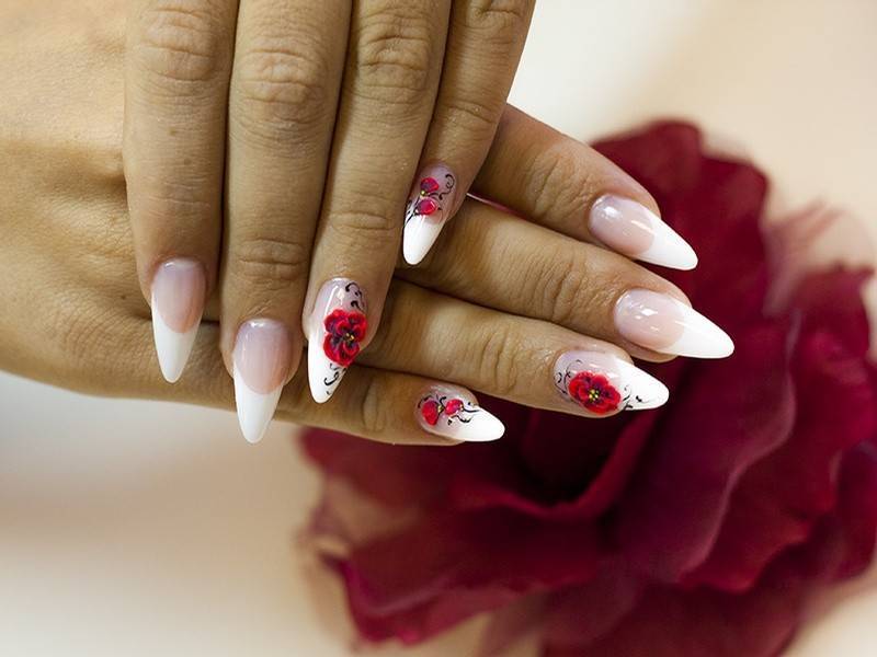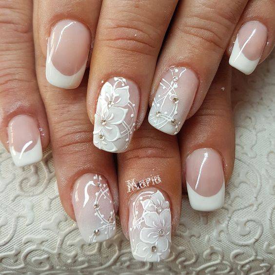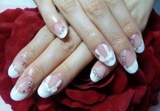 Гель для ногтей с белым декором может быть идеальным вариантом.