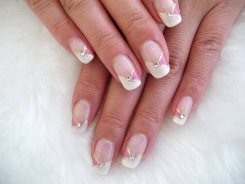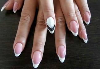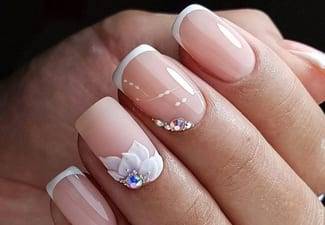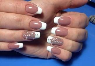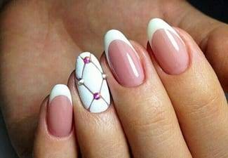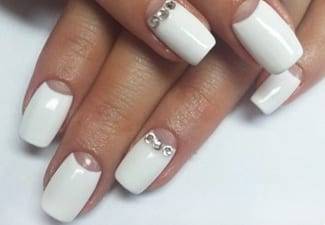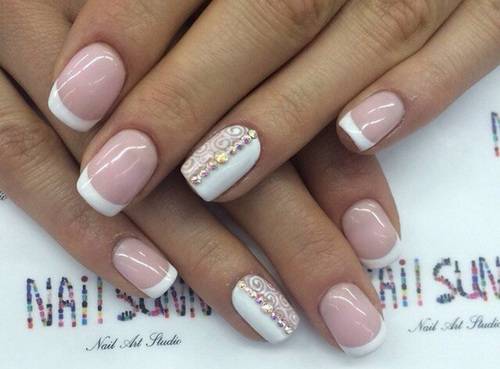 Настоящим воплощением классики считается белый френч. Тоненькая изящная полоска по краю ноготка ассоциируется с романтическим, беззащитным и нежным образом, но при этом выглядит удивительно элегантно. Такой маникюр отлично впишется в любой выбранный стиль. Можете не сомневаться, он будет выглядеть утонченно с любой длиной ноготков и формой. Чаще всего белый френч выбирают для свадебного маникюра. Для желающих сделать свой французский нейл-арт оригинальным и интересным, стоит воспользоваться доступными элементами декора. Это могут быть рисунки, акриловая лепка, стразы, наклейки или пудра. Главное использовать украшения в меру.