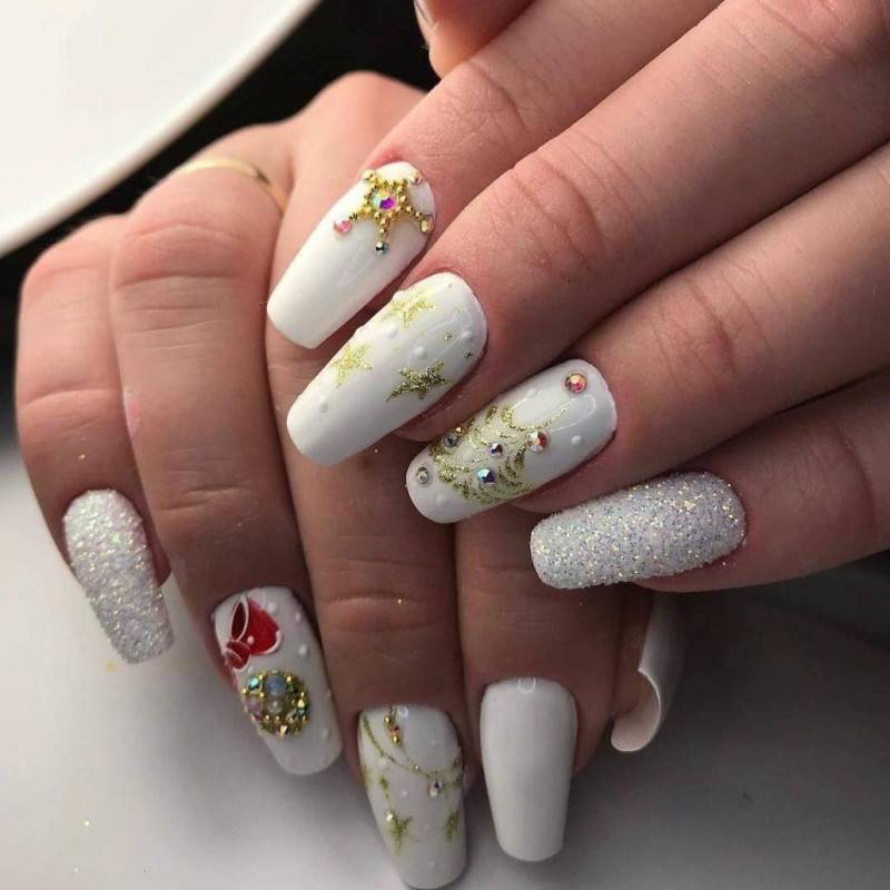 #2 Белый новогодний маникюр на длинные ногти 2020