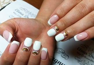 Конечно, у мастеров нейл арта всегда наготове классические оттенки гель лаков. Когда речь идет о белых оттенках, в голову приходит французский дизайн. В классическом варианте все просто — прозрачный лак сочетается с белой «улыбкой». Но белые оттенки поистине универсальны — они легко подружатся с любым, даже самым сложным составным цветом. Главное — выбрать из гаммы теплый или холодный вариант.
