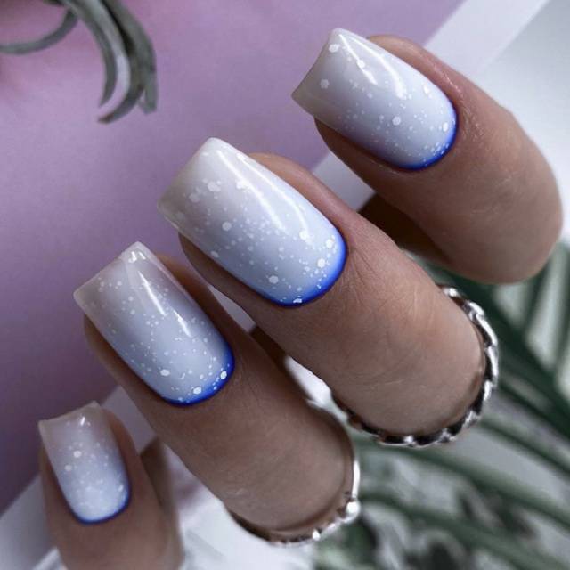 Небесный оттенок на пике популярности, а еще он безупречно выглядит в тандеме с белым. Пастельный голубой подойдет для техники омбре, чтобы получились нежные, мягкие переходы.