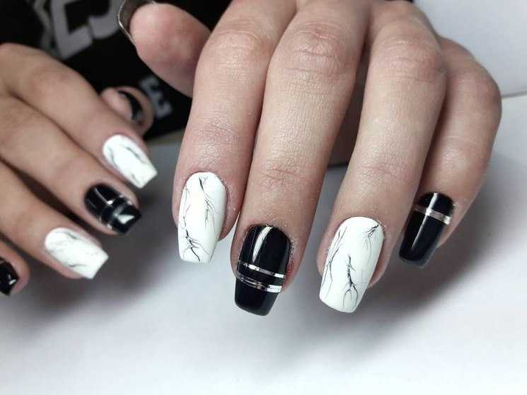 Добавление необычных дизайнов, как геометрия или абстракция, точек или произвольных линий сделают маникюр особенным. Даже простое покрытие с чередованием черного и белого будет красиво смотреться на ногтях.