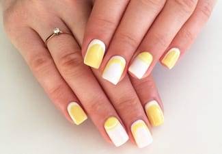 Сочетание теплых белых оттенков с желтым в матовом маникюре — это летнее солнце, свежий воздух и радость. К нему можно добавить тематические рисунки, 3D прозрачные капли, немного яркой фольги.
