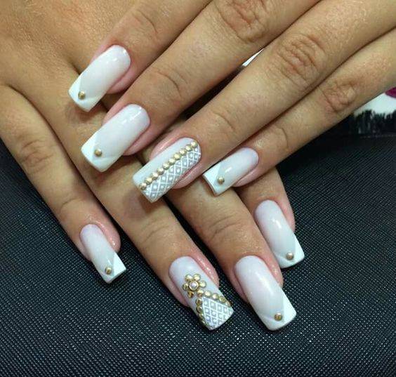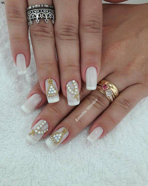 Именно декор позволяет создавать художественный нейл-арт на белой основе.