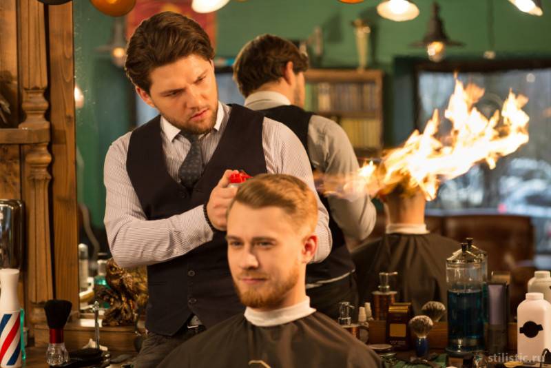 Следующий этап – процедура обработки волос открытым огнём. При этом мастер берет палку (или инструмент, который похож на длинные ножницы), на одном конце которой намотана вата, и, обмакнув её в спирте, поджигает. Получается что-то вроде факела. И тут появляется первое ощущение адреналина, но в основном, это только в первый раз.