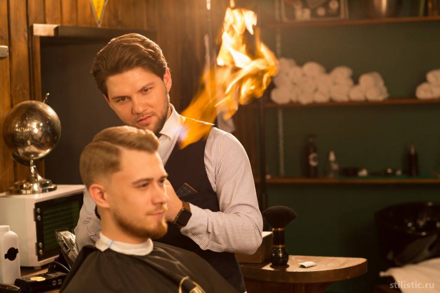 Следующий этап – процедура обработки волос открытым огнём. При этом мастер берет палку (или инструмент, который похож на длинные ножницы), на одном конце которой намотана вата, и, обмакнув её в спирте, поджигает. Получается что-то вроде факела. И тут появляется первое ощущение адреналина, но в основном, это только в первый раз.