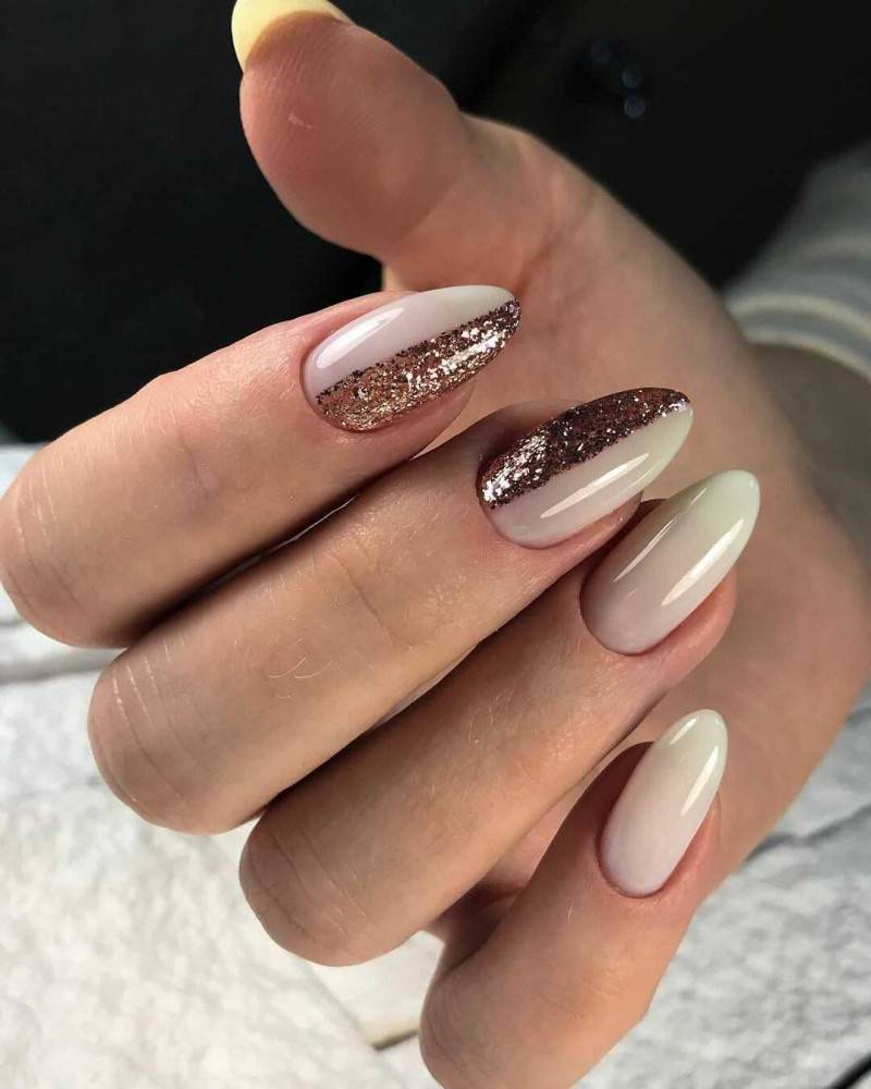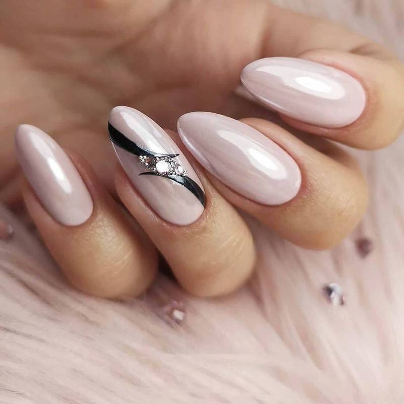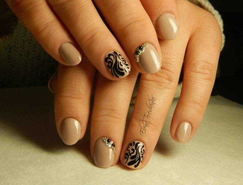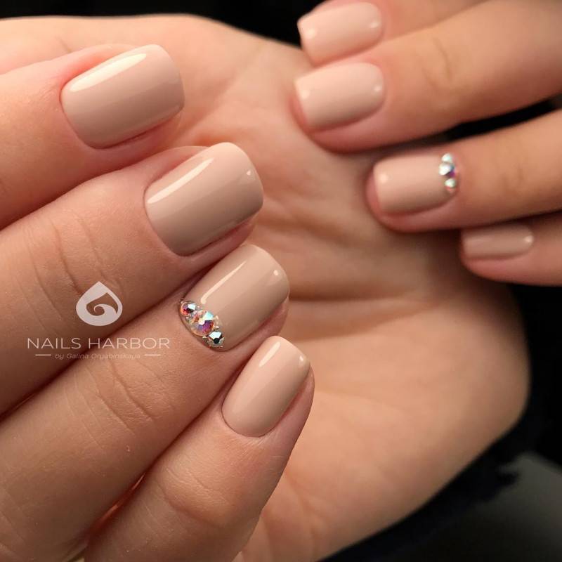 Стильные варианты оформления маникюра беж со стразами и блёстками