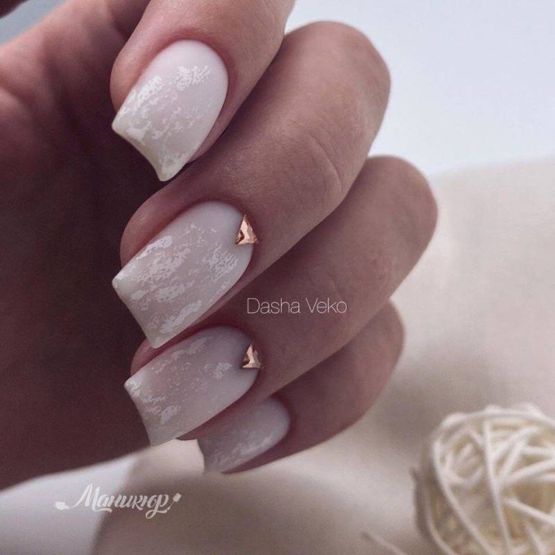 Универсальным и практичным оттенком считается бежевый цвет. Он отлично смотрится на ногтях любой длины. Если хочется разбавить однотонное покрытие, то можно использовать различные модные техники. Так, согласно модным тенденциям на пике популярности мраморный эффект. Стильно смотрится дизайн с использованием графических рисунков, геометрических фигур. Причем, они могут украшать только 1-2 пальчика. В этом случае они не перегрузят задуманный нежный дизайн и при этом придадут оформлению особую колоритность. Несмотря на нейтральность бежевого цвета, при выборе различных оттенков для нежного маникюра, можно создать эффект омбре, который также очень популярен в настоящее время.