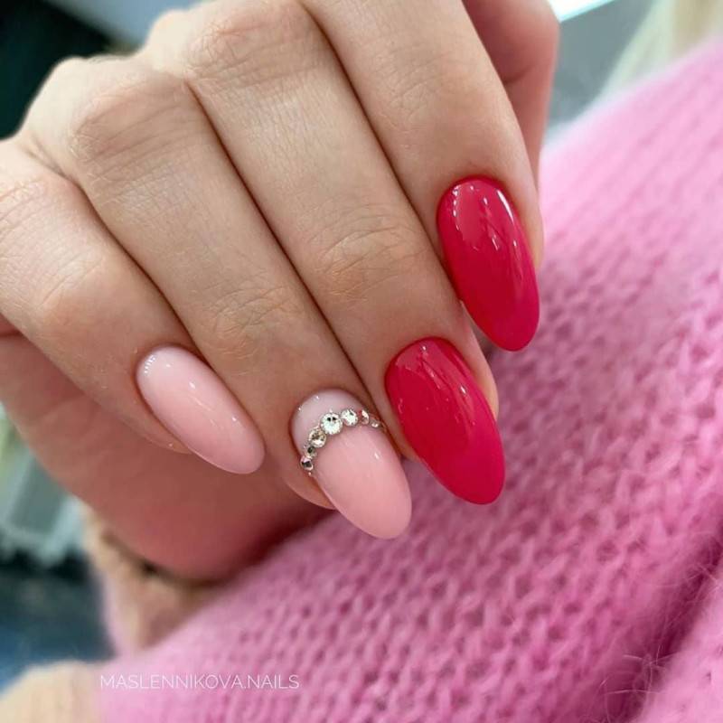 Каждый мастер индивидуально подбирает размер и расцветку камней в зависимости от основного оттенка гель-лака, длины ногтей и предпочтений самой модели. Какие бы камни, оттенки или декор вы ни выбрали, стоить помнить, что на острых ногтях нужно придерживаться стиля минимализм, чтобы не получить вульгарный и вызывающий дизайн.