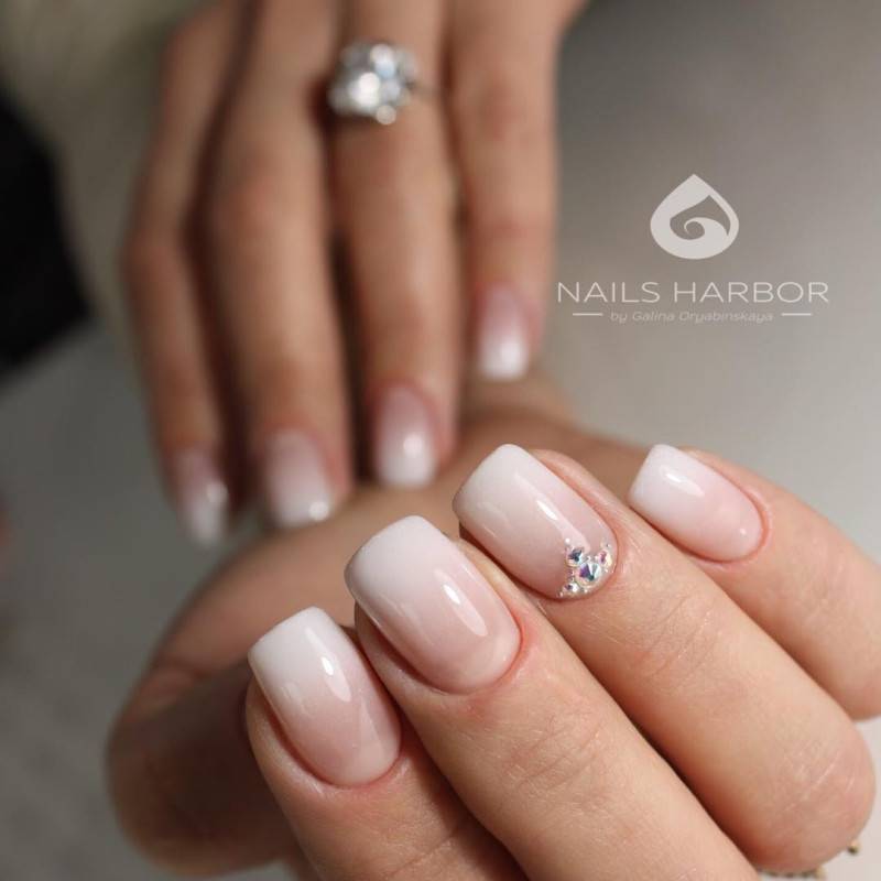 В этом случае при использовании страз нужно выбирать мелкие экземпляры, чтобы эффект получился гармоничным, аккуратным и нежным.