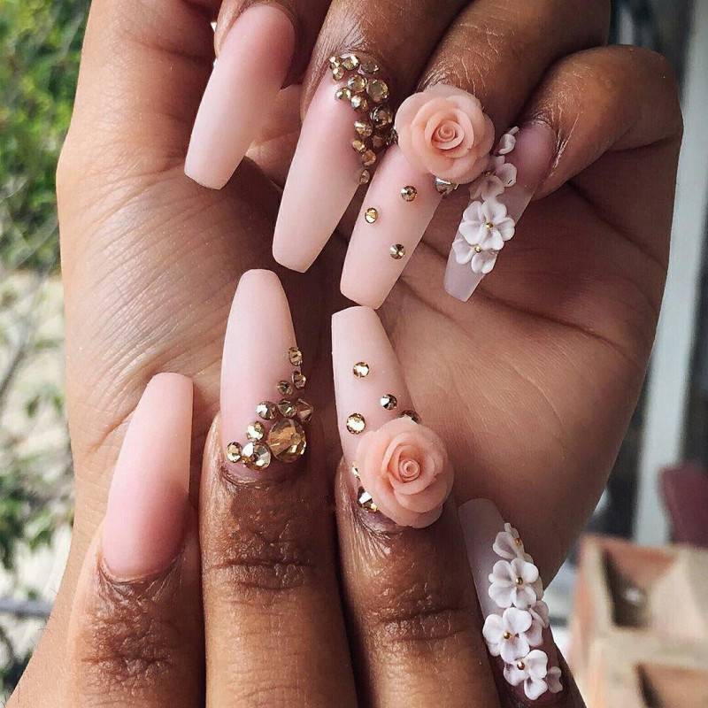 В 2020 году существует множество вариантов и техник выполнения цветочного дизайна. Любители реалистичного оформления преимущественно выбирают для себя ручную роспись. Ведь с кистями разной толщины и длины можно прорисовать все детали особенно тщательно. Кстати профессионалы в сфере нейл-арта часто используют технику “по-мокрому”, чтобы достичь потрясающего акварельного эффекта в дизайне. Декор в данном случае будет особенно уместным.