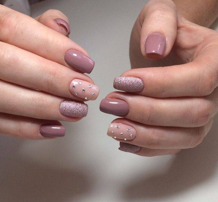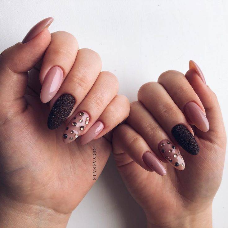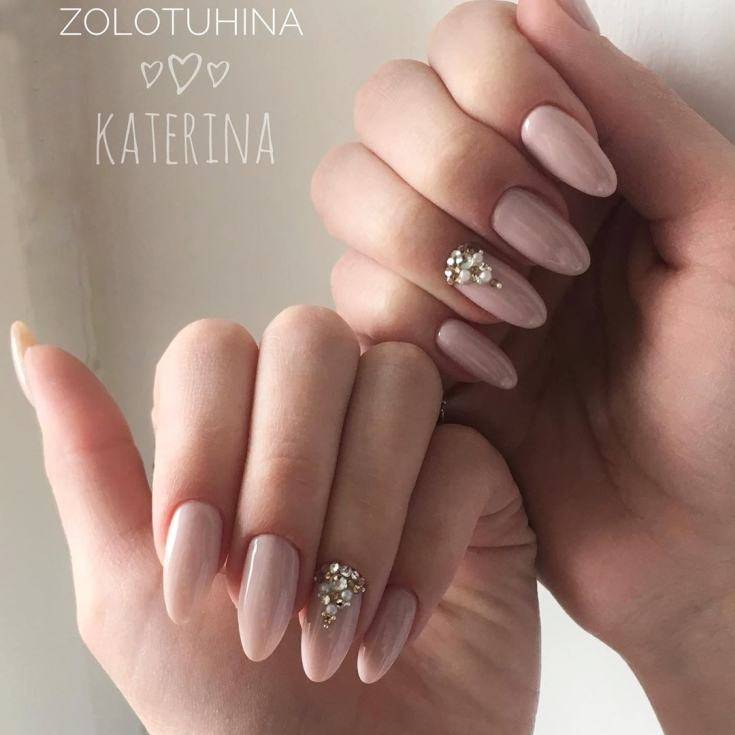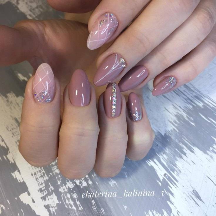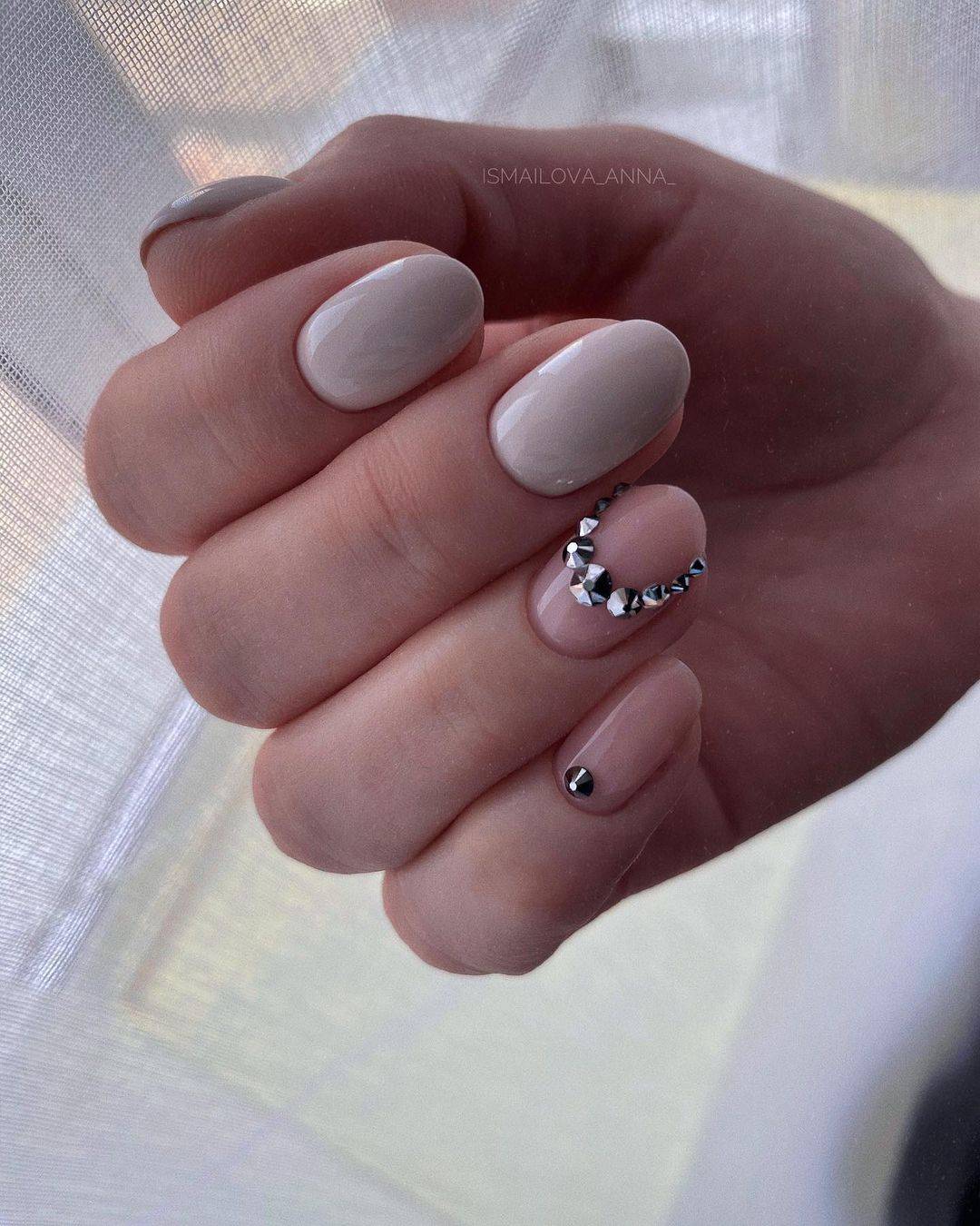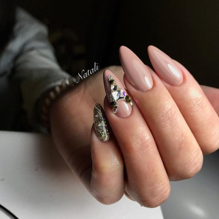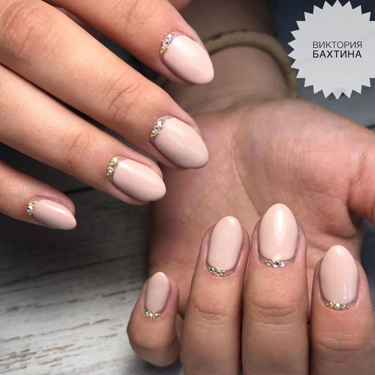 Стильные варианты оформления маникюра беж со стразами и блёстками