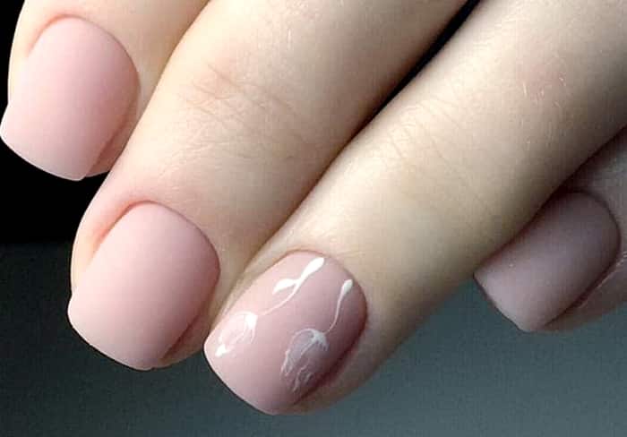Если очень сложно определиться, тогда выполняйте маникюр бежевого цвета с сочетанием двух текстур. Это решение выглядит невероятно гармонично и привлекательно.