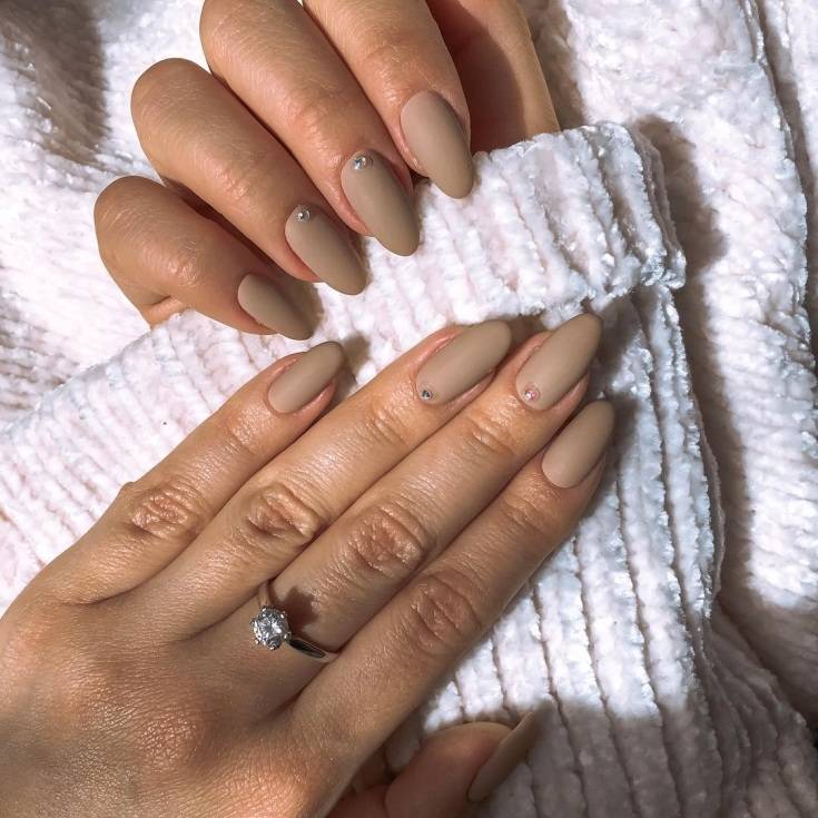 Для коротких ногтей предпочтительно выбирать темные оттенки бежевого, особую элегантность придаст матовое покрытие в стиле нюд.