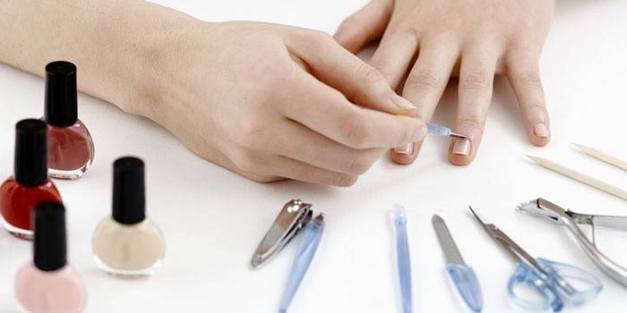 Щипчики и ножницы используют для укорачивания ногтей, обрезания заусенцев, а специальная лопаточка – для отодвигания кутикулы. В последние годы все чаще используется не обрезной, а аппаратный маникюр, который удобен в применении. При его применении нежная кожа кутикулы и боковые валики пальцев травмируются меньше, за счет полирования специальным прибором.
