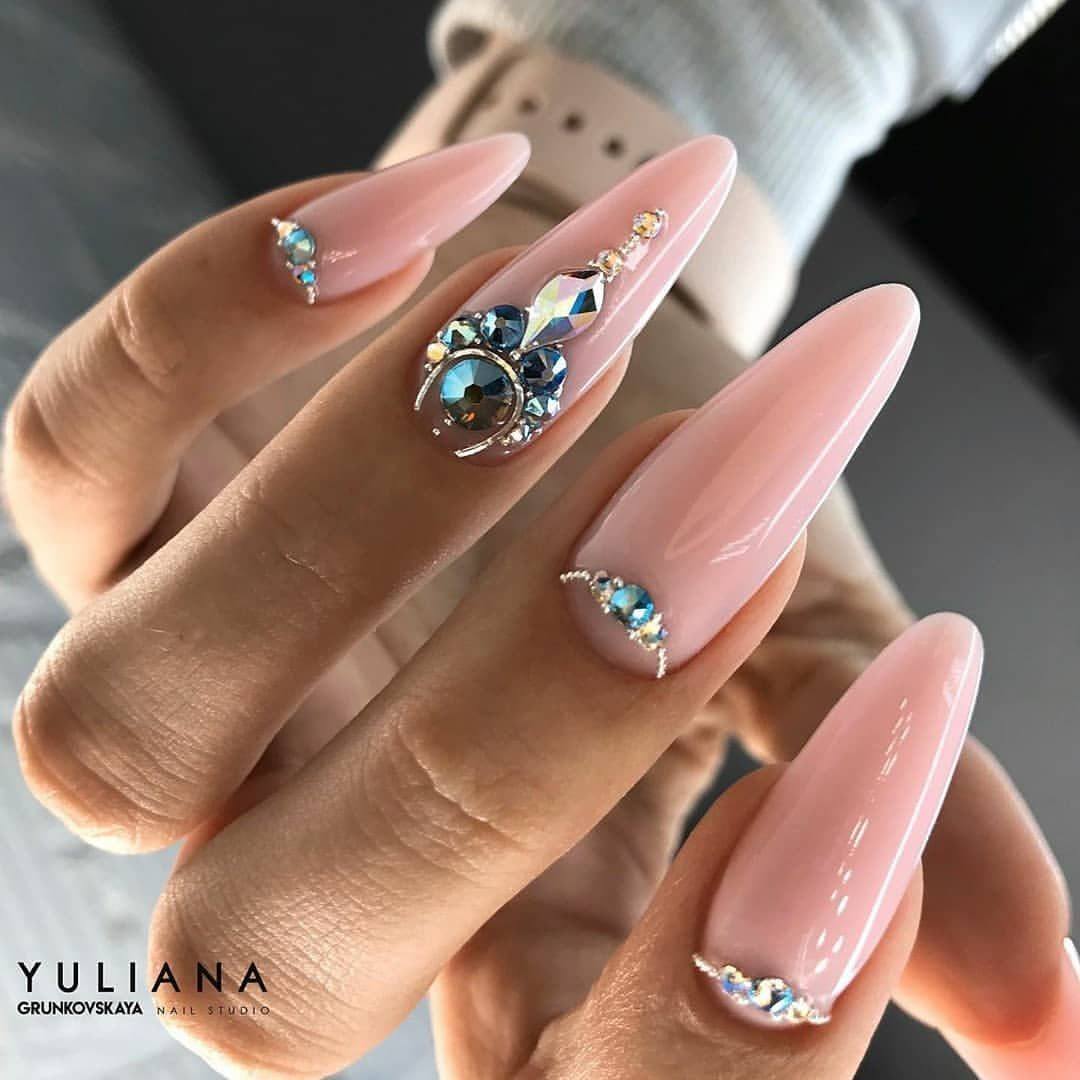 Острые ногти со стразами 2020: идеи эффектного дизайна ногтей