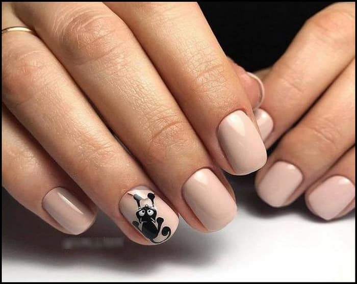 Самый простой вариант сочетания, в котором часть ногтей покрывается бежевым лаком, а оставшаяся часть черным. Покрытие может быть глянцевым или матовым. В маникюре можно сделать легкий темный акцент, покрыв ноготь на безымянном пальце черным лаком. Или же выполнить более яркий маникюр, чередуя цвета.