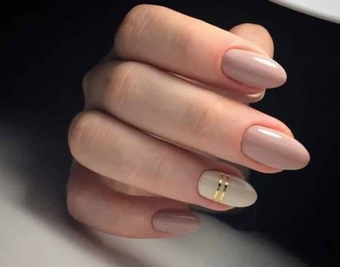 Маникюр, в котором сочетаются оттенки бежевого и золотого может выступать в качестве самостоятельного нейл-арта. Но если хочется, можно дополнить его дизайном в виде рисунка. Для последнего выбирают подходящий по гамме контрастный оттенок. Например: шоколадный, черный, винный, марсала, киноварь, розовый и др.