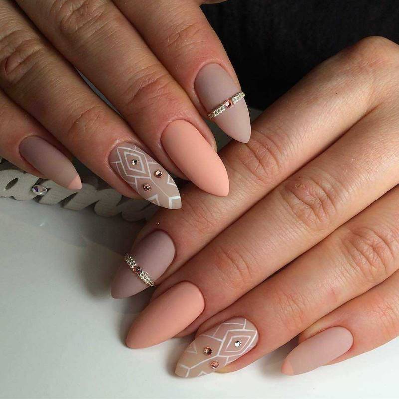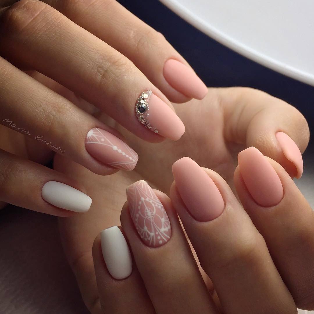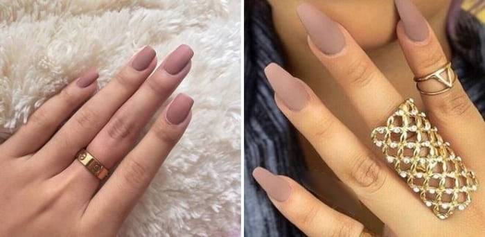 Бежевый матовый маникюр держится в тренде уже несколько сезонов. Оптимально подходит для коротких ногтей. Для бежевого матового маникюра на короткие ногти лучше подбирать не сложные рисунки, чтобы украсить столь неброский дизайн. При более ощутимой длине ногтя можно создать и смелый дизайн, с использованием разного декора, росписи.