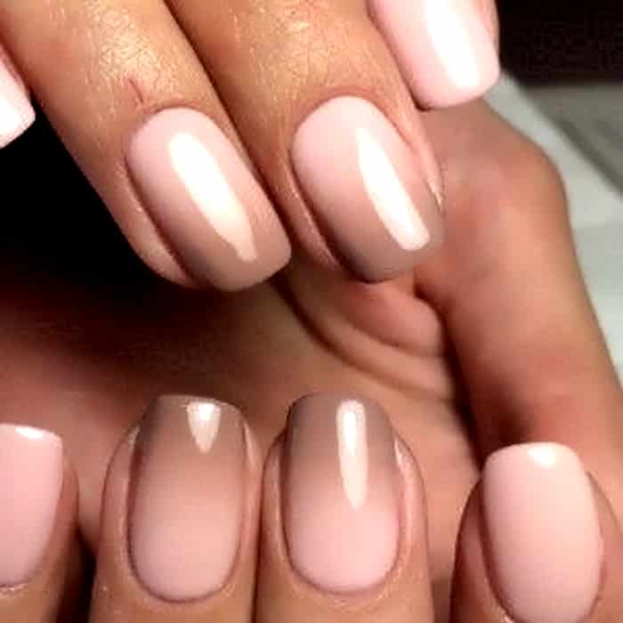 Самое популярное сочетание цвета в градиенте или омбре – белый с бежевым. Такой маникюр смотрится очень натурально, подходит для всех случаев в жизни, а также для женщин разного возраста и длины ногтей. Но кроме такого соединения цветов можно использовать и другие: розовый, черный, красный, синий и т.д.