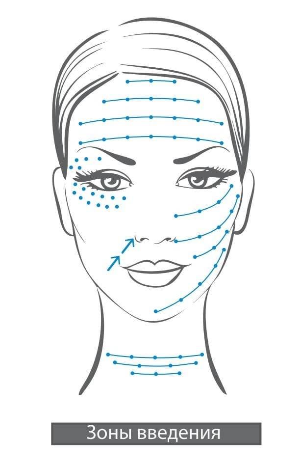 Затем косметолог проводит антисептическую обработку кожи. Когда участок обеззаражен, врач распаковывает стерильную емкость с препаратом и начинает процедуру. Техника обкалывания может быть папульной, точечной или линейной. Ее выбор зависит от поставленных целей и размером обрабатываемого участка.