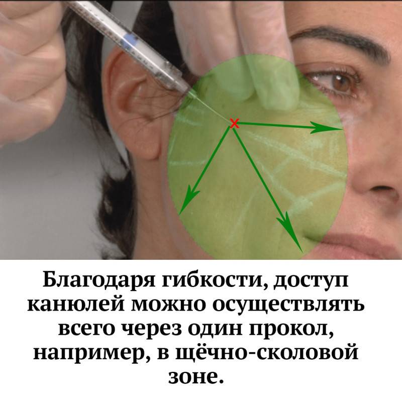 Во время выполнения процедуры врач, проводя канюлю через ткани, должен чувствовать сопротивление – это сигнализирует о том, что он манипулирует именно на уровне дермы, а не в подкожно-жировой клетчатке.