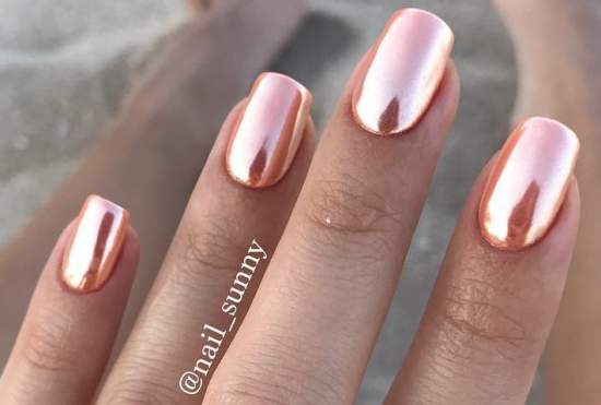 Пигменты позволяют в считанные минуты преобразить обычное, монохромное покрытие в сверкающую зеркальную гладь или нежные перламутровые переливы. Используют весь доступный ассортимент, начиная от металлика и магнитной, и заканчивая жемчужной. Наносят на все пальчики, либо в качестве акцентов: на 1-2 ноготка, на кончики, в виде полос.