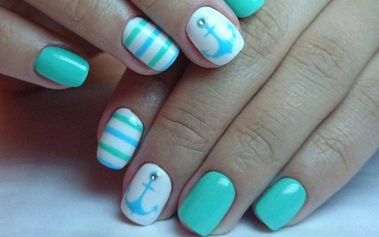 Модный морской маникюр с рисунком и украшениями: фото 2022