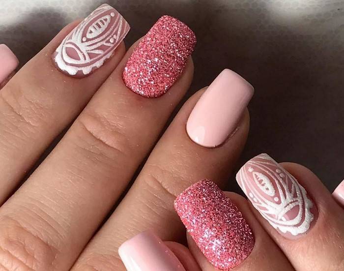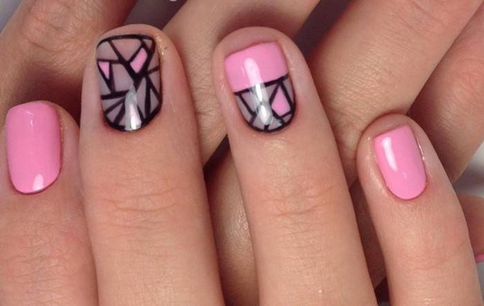 Ещё несколько замечательных идей розового маникюра с геометрией: