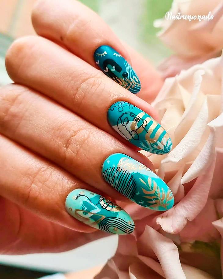 Стильный бирюзовый маникюр 2020: лучшие сочетания с другими оттенками