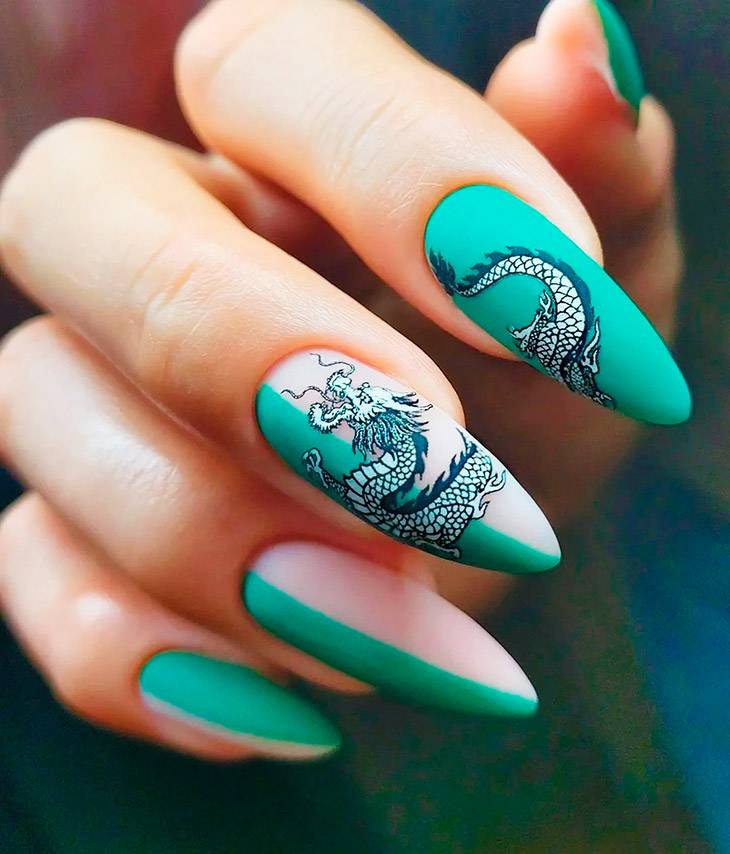 Длинный бирюзовый маникюр: идеи дизайна, новые фото-примеры 2022-2023