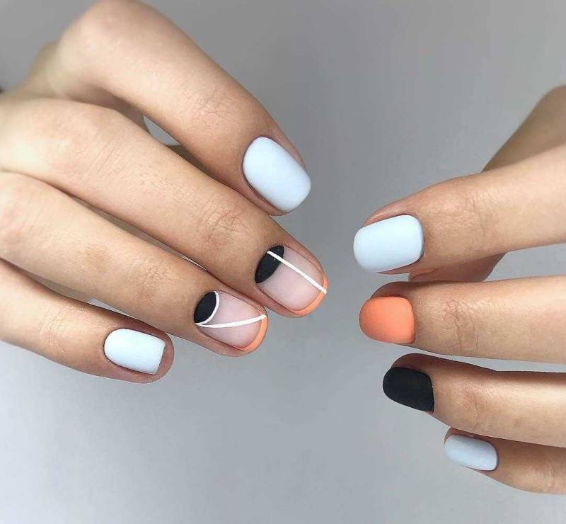 Очень популярным в 2017 году остаётся маникюр с геометрическим дизайном. В тренде различные фигурки: от треугольников до всевозможных зигзагов и полос, объединяющихся в единую композицию. Такой нейл-арт подойдёт для ногтей самой разной длины, но не стоит забывать о том, что в этом сезоне лучше отдать предпочтение коротким и средним ноготкам, воплощающим естественность.