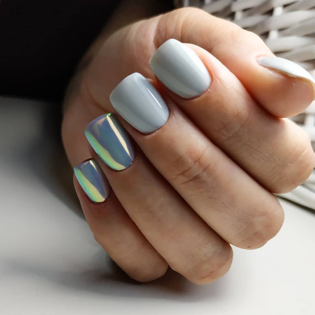 Пигменты позволяют в считанные минуты преобразить обычное, монохромное покрытие в сверкающую зеркальную гладь или нежные перламутровые переливы. Используют весь доступный ассортимент, начиная от металлика и магнитной, и заканчивая жемчужной. Наносят на все пальчики, либо в качестве акцентов: на 1-2 ноготка, на кончики, в виде полос.