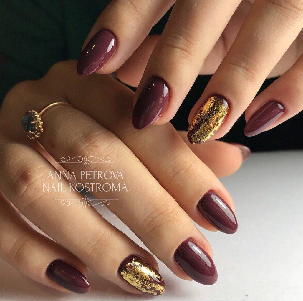 Они не гармонируют с золотом. Чтобы маникюр был более естественным и стильным, темно-красный фон рекомендуется матировать.