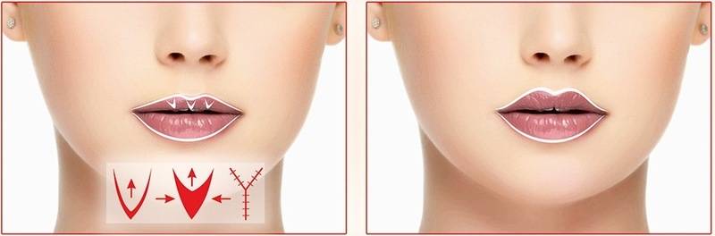 - Увеличить или уменьшить выворот верхней губы и устранить таким образом десневую улыбку или такой дефект, как слишком узкие губы;