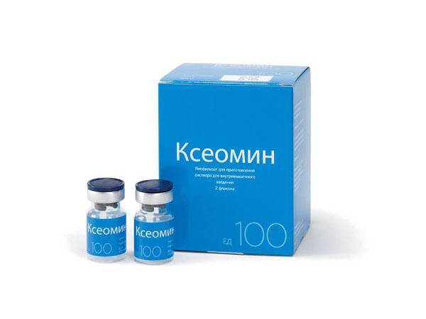 Ксеомин (Германия) идентичен Ботоксу по большинству показателей. Обладает мягким действием, средней степенью диффузии. Эффективность уколов заметна на 2–3 сутки, максимальное раскрытие — до 2 недель. Преимуществом препарата является отсутствие необходимости соблюдения особых условий хранения. Вещество редко дает побочные эффекты (даже в руках неопытных косметологов). Период действия мал: около 3 месяцев. Средняя цена за единицу средства с токсином — 120–240 руб.