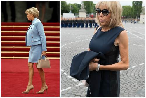 Загорелая кожа вместе с волосами цвета блонд создают нетрадиционное для французского стиля впечатление. Это дополняет неповторимый образ жены Макрона, которая во всем остается собой.