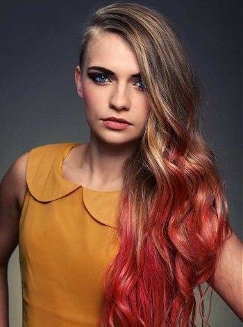 Яркий цвет отлично смотрится на прядках по всей их длине или на самых кончиках волос. В первом и втором случае окрашивание будет смотреться нетривиально.