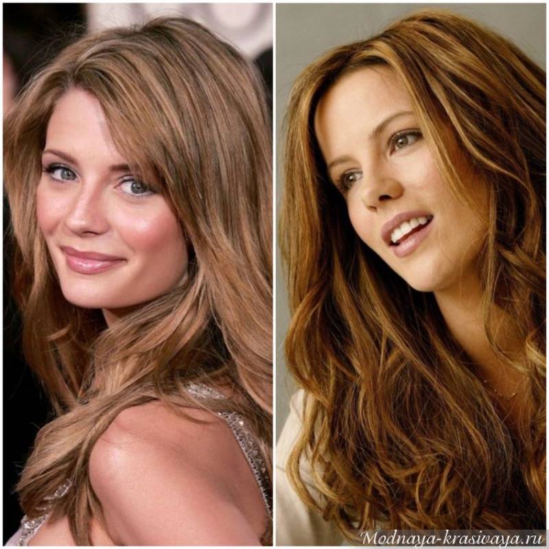 Обладательницы русых волос могут позволить себе жемчужные и платиновые оттенки, а шатенки – медовые и медные цвета. Данная покраска придает даже тонким локонам дополнительный объем, а волосы приобретают шикарный натуральный блеск.