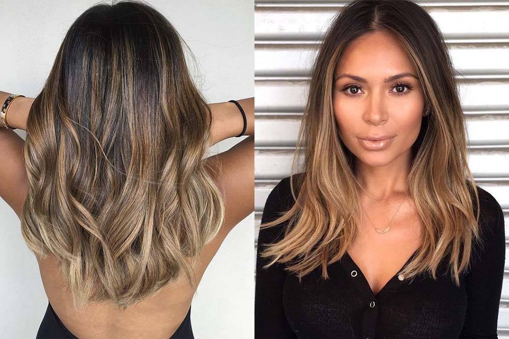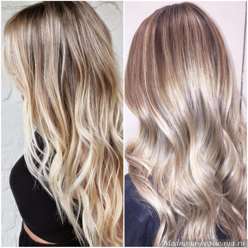 Как ни странно, но данный вид окрашивания наиболее льстит именно обладательницам русых локонов. Подбирать оттенки мастер должен, опираясь на цветотип клиентки: от прохладных жемчужных и кофе с молоком до теплых пшеничных, янтарных, капучино.