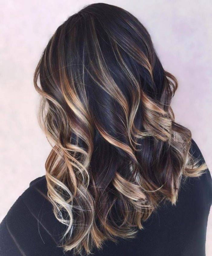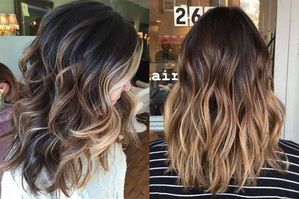 Классику лучше всего делать на длинных тёмных волосах, когда 2–3 светлых оттенка смешиваются с натуральными прядями. Такой вариант брондирования позволяет придать дополнительный объём причёске.