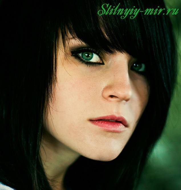 - В выборе цветовой гаммы для брюнеток с зелёными глазами нет никаких запретов. Наиболее предпочтительные тени – серебристые, зелёные (приглушённые), коричневато-зелёные, фиолетовые.