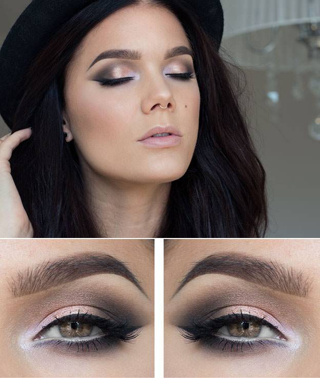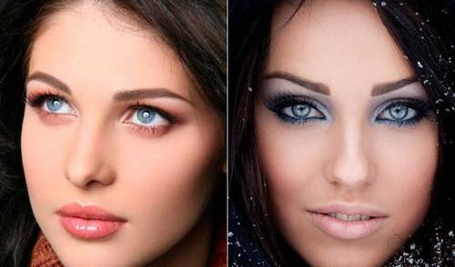 Брюнетка с голубыми глазами, дымчатые глаза для вас! Ваш взгляд становится еще более сексуальным и соблазнительным. Как рисовать в этот самый важный день? Мастер начинает с определения, имеет ли он дело с прохладной или теплой красотой. Яркий, холодный цвет лица характерен для холодного типа. Женщинам рекомендуется избегать теплых теней на веках и рекомендовать темным, то есть серым, прохладным коричневым, освещенным гранатам и сливам.